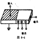 壓電變壓器主要用于高壓、低功率和正弦波變換的情況,具有輸出電壓高,重量輕,體積小,無泄漏磁場(chǎng)、不燃燒等獨(dú)特優(yōu)點(diǎn)。為了獲得多個(gè)電壓輸出,根據(jù)橫—縱變壓器的輸出電壓與長度成正比,越靠近發(fā)電部分端頭,電壓越高,我們可在發(fā)電部分的不同位置制作電極作為抽頭,從而獲得不同的電壓輸出。如圖5-5所示。