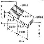 如圖5-4所示,整個(gè)陶瓷片分成兩部分,左部為輸入端(又稱驅(qū)動(dòng)部分),上、下面都有燒滲的銀電極,沿厚度方向極化,右部為輸出端(又稱發(fā)電部分),其右端面有燒滲的銀電極。沿長度方向極化。當(dāng)輸入端加上交變電壓時(shí),由于逆壓電效應(yīng),瓷片產(chǎn)生沿長度方向的伸縮振動(dòng),將輸入電能轉(zhuǎn)變?yōu)闄C(jī)械能;而發(fā)電部分則通過正壓電效應(yīng),將機(jī)械能轉(zhuǎn)變?yōu)殡娔?,從輸出端輸出電壓。無負(fù)載時(shí),開路升壓比為: