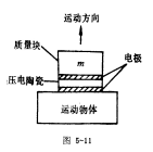 圖5-11是壓電陶瓷加速度計(jì)的示意圖。當(dāng)被測(cè)物體加速度運(yùn)動(dòng)時(shí),放在上面的質(zhì)量為m 的質(zhì)量塊夾在中間的壓電陶瓷片產(chǎn)生壓力F,由于壓電效應(yīng),在陶瓷片的上下電極有電壓輸出,此電壓與應(yīng)力成正比,而應(yīng)力又與加速度(也即被測(cè)物體的加速度)成正比,因而可以測(cè)得的輸出電壓求得運(yùn)動(dòng)物體的加速度。